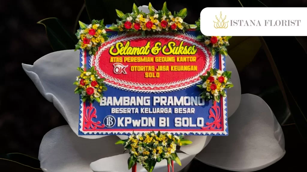 Standing flower memiliki tampilan yang tegak dan elegan, menjadikannya pilihan utama untuk acara resmi seperti pembukaan toko atau peresmian kantor. Selain sebagai bentuk ucapan selamat, standing flower juga dapat memperkuat relasi bisnis, membangun citra profesional, dan memberikan kesan positif bagi pelanggan maupun mitra.