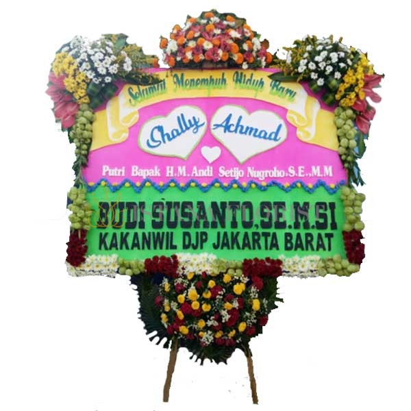 Papan bunga pernikahan, juga dikenal sebagai papan bunga nikah atau papan bunga wedding, adalah rangkaian bunga yang dipasang pada lokasi upacara pernikahan. Biasanya dipasang di pintu masuk gedung atau tempat upacara, papan bunga pernikahan menandai awal dari perayaan yang indah. Dengan desain yang elegan dan pesan yang menyentuh, papan bunga pernikahan menjadi sorotan utama dalam dekorasi pernikahan.