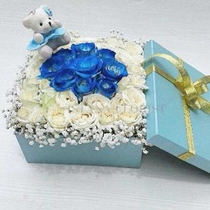- Rangkaian buket bunga semi import mawar putih, mawar pink & baby breath.