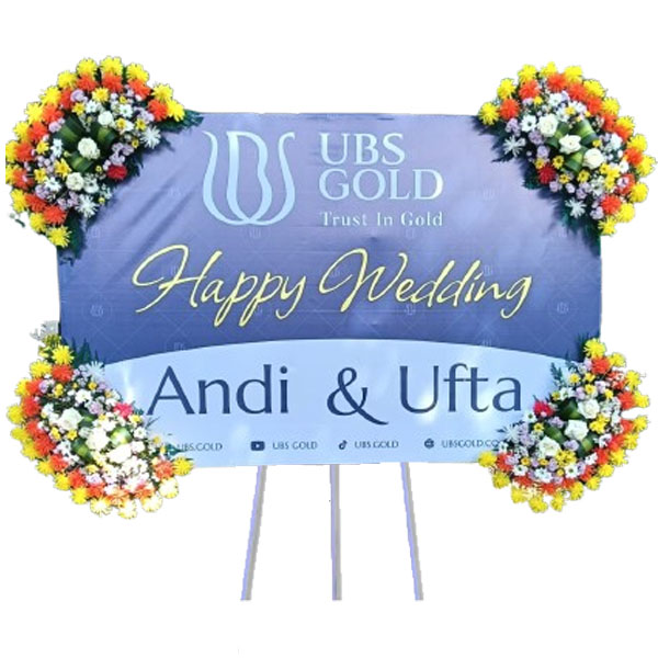 Karangan bunga papan printing ukuran 2 m x 1,25 m dengan bunga artificial & segar untuk bunga papan di Banyuwangi dan sekitarnya. Bunga papan wedding banyuwangi, bunga papan duka cita banyuwangi, bunga papan selamat & sukses/congratulations banyuwangi