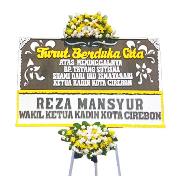 Karangan bunga papan menggunakan styrofoam ukuran 2 m x 1,25 m dengan 2 titik bunga segar untuk bunga papan di Cirebon dan sekitarnya. Toko Bunga Cirebon menyediakan bunga papan pernikahan, bunga papan duka cita, bunga papan selamat & sukses/congratulations.