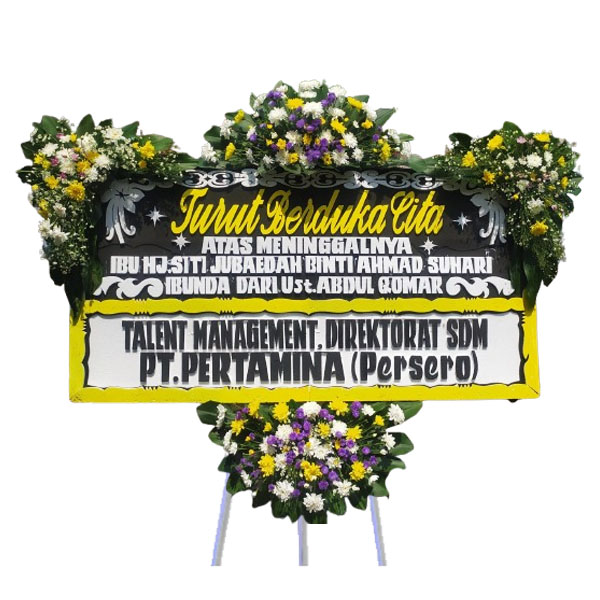 Karangan bunga papan menggunakan styrofoam ukuran 2 m x 1 m dengan 4 titik bunga segar untuk bunga papan di Cirebon dan sekitarnya. Florist Cirebon menyediakan bunga papan pernikahan, bunga papan duka cita, bunga papan selamat & sukses/congratulations.