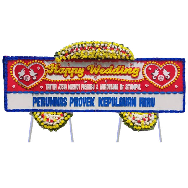 - Karangan bunga papan ukuran panjang 4 meter x tinggi 1,25 meter.