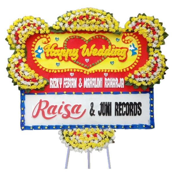 - Karangan bunga papan ukuran panjang 2 meter x tinggi 1,5 meter.