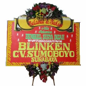 Karangan bunga papan menggunakan styrofoam ukuran 2,5 m x 1,25 m dengan 5 titik bunga segar membingkai papan untuk bunga papan di Kediri dan sekitarnya. Untuk bunga papan pernikahan, bunga papan duka cita, bunga papan congratulations.