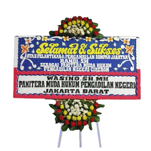 Karangan bunga papan menggunakan styrofoam ukuran 2 m x 1 m dengan 2 titik bunga segar untuk bunga papan di Cirebon dan sekitarnya. Florist Cirebon menyediakan bunga papan pernikahan, bunga papan duka cita, bunga papan selamat & sukses/congratulations.