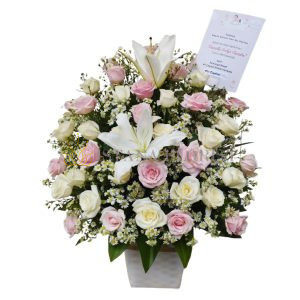Untuk bunga papan pernikahan, bunga papan duka cita, bunga papan selamat & sukses/congratulations.
