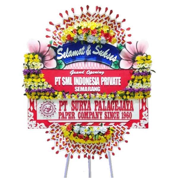 Karangan bunga papan ukuran panjang 2 meter x tinggi 1,25 meter dengan bunga segar & kertas untuk bunga papan di Semarang dan sekitarnya.
