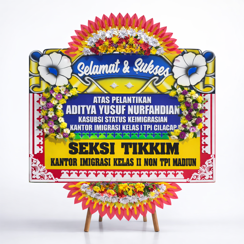 Karangan bunga papan ukuran panjang 2 meter x tinggi 1,25 meter dengan hiasa bunga segar & kertas untuk bunga papan di Semarang dan sekitarnya.