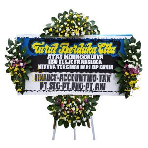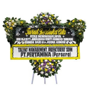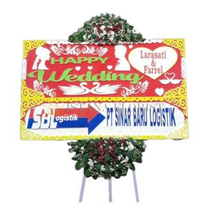 Karangan bunga papan menggunakan styrofoam ukuran 2 m x 1 m dengan 2 titik bunga segar untuk bunga papan di Cirebon dan sekitarnya. Toko Bunga Cirebon menyediakan bunga papan pernikahan, bunga papan duka cita, bunga papan selamat & sukses/congratulations.