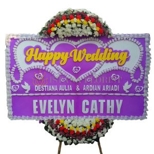 Karangan bunga papan ukuran 2 x 1,25 m dengan bunga 2 titik untuk bunga papan di Bogor dan sekitarnya. Untuk bunga papan pernikahan, bunga papan duka cita, bunga papan selamat & sukses/congratulations.