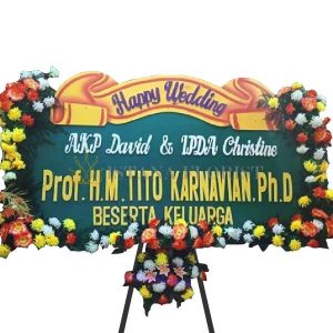 Karangan bunga papan ukuran panjang 2,2 meter x tinggi 1,3 meter dengan 4 titik bunga palsu untuk bunga papan di Bojonegoro dan sekitarnya. Untuk bunga papan pernikahan, bunga papan duka cita, bunga papan selamat & sukses/congratulations.