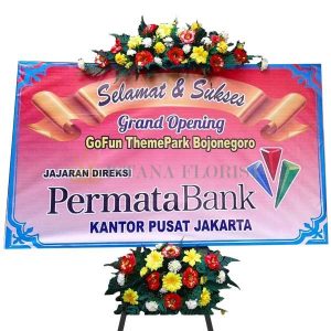 Karangan bunga papan ukuran panjang 2,2 meter x tinggi 1,3 meter dengan 4 titik bunga palsu untuk bunga papan di Bojonegoro dan sekitarnya. Untuk bunga papan pernikahan, bunga papan duka cita, bunga papan selamat & sukses/congratulations.