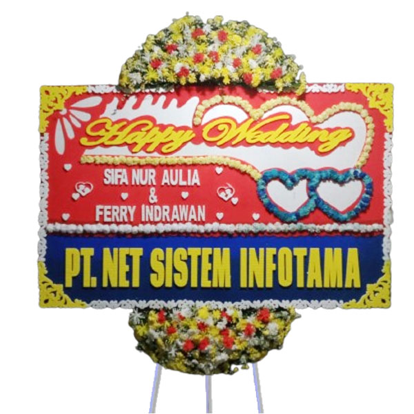 Karangan bunga papan ukuran panjang 2×1,25 meter dengan bunga 2 titik untuk bunga papan di Garut dan sekitarnya. Siap untuk Bunga papan pernikahan, bunga papan duka cita, bunga papan selamat, bunga papan ulang tahun dan lainnya.