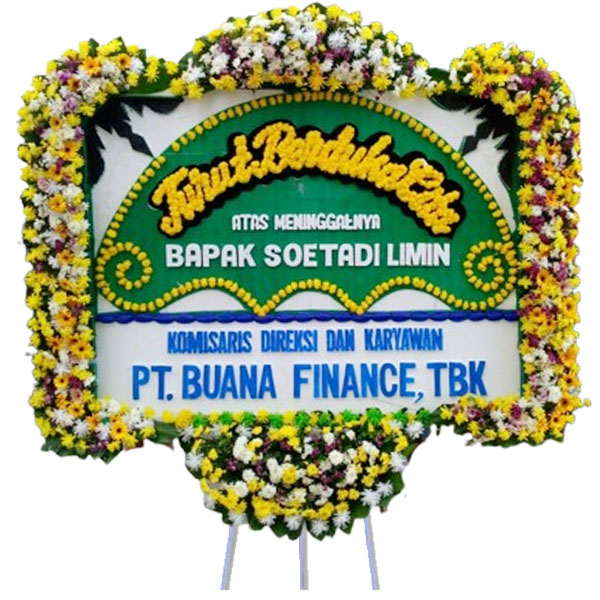 - Karangan bunga papan ukuran panjang 2 meter x tinggi 1,5 meter,