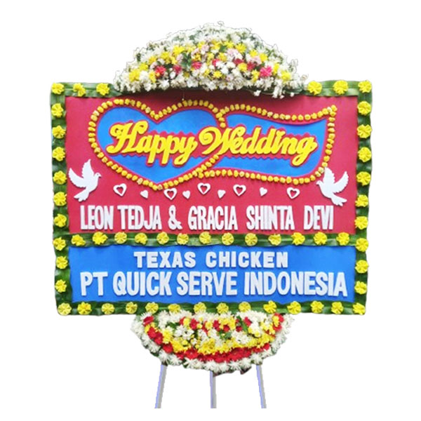 - Karangan bunga papan ukuran panjang 2 meter x tinggi 1,5 meter.