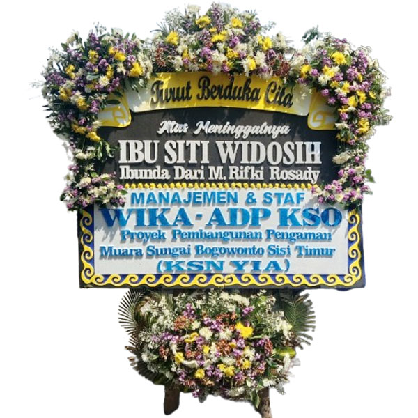 Karangan bunga papan ukuran 2 x 1.5 meter dengan 4 titik bunga segar untuk bunga papan di Jogja dan sekitarnya.