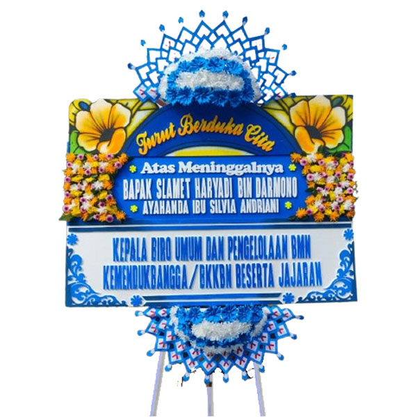 Karangan bunga papan ukuran panjang 2 meter x 1,25 meter dengan 4 titik bunga untuk bunga papan di Kudus dan sekitarnya. Siap untuk Bunga papan pernikahan, bunga papan duka cita, bunga papan selamat & sukses, bunga papan ulang tahun dan lainnya.