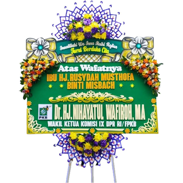 Karangan bunga papan ukuran panjang 2 meter x 1.25 meter dengan 4 titik bunga untuk bunga papan di Kudus dan sekitarnya. Siap untuk Bunga papan pernikahan, bunga papan duka cita, bunga papan selamat & sukses, bunga papan ulang tahun dan lainnya.
