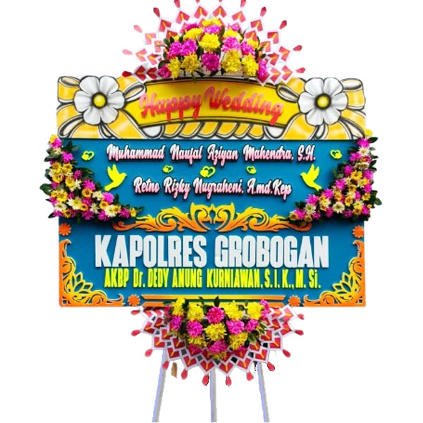 Karangan bunga papan ukuran panjang 2 meter x 1,25 meter dengan bunga segar & kertas untuk bunga papan di Kudus dan sekitarnya. Siap untuk Bunga papan pernikahan, bunga papan duka cita, bunga papan selamat & sukses, bunga papan ulang tahun dan lainnya.