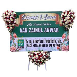 Karangan bunga papan menggunakan styrofoam ukuran 2,2 m x 1,3 m dengan 3 titik bunga segar untuk bunga papan di Malang dan sekitarnya. Untuk bunga papan pernikahan, bunga papan duka cita, bunga papan selamat & sukses/congratulations.