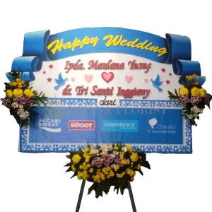 Karangan bunga papan ukuran 2 x 1,5 meter dengan hiasan bunga segar untuk bunga papan di Pasuruan dan sekitarnya. Bunga papan pernikahan, bunga papan duka cita, bunga papan selamat & sukses/congratulations siap diantar ke alamat tujuan.
