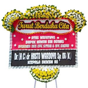 Karangan bunga papan ukuran panjang 2 meter x tinggi 1,5 meter dengan 4 titik bunga segar untuk bunga papan di Tangerang dan sekitarnya. Untuk bunga papan pernikahan, bunga papan duka cita, bunga papan selamat & sukses/congratulations.