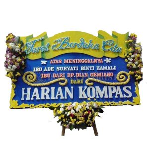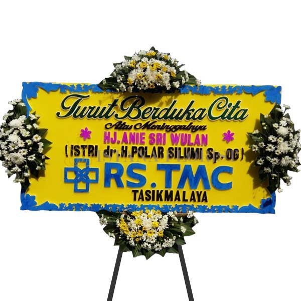 Karangan bunga papan ukuran panjang 2 meter x tinggi 1 meter dengan 4 titik bunga untuk bunga papan di Tasikmalaya dan sekitarnya. Untuk bunga papan pernikahan, bunga papan duka cita, bunga papan selamat & sukses/congratulations, bunga papan ulang tahun.