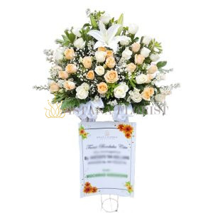 Rangkaian bunga segar siap mewakili ungkapan Anda untuk acara wedding, opening toko/ kantor, acara ulang tahun, hari anniversary dengan menggunakan bunga segar, standing besi dan pita sebagai penghias rangkaian bunga di Solo dan sekitarnya.