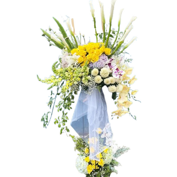 Rangkaian bunga segar & anggrek dengan standing besi siap mewakili ungkapan Anda untuk acara wedding, duka cita, opening toko/ kantor, acara ulang tahun, hari anniversary untuk pengiriman ke Bandung dan sekitarnya.