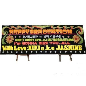 Kami menawarkan opsi personalisasi pada teks dan desain papan bunga, memastikan rangkaian bunga Anda benar-benar unik dan sesuai kebutuhan acara.